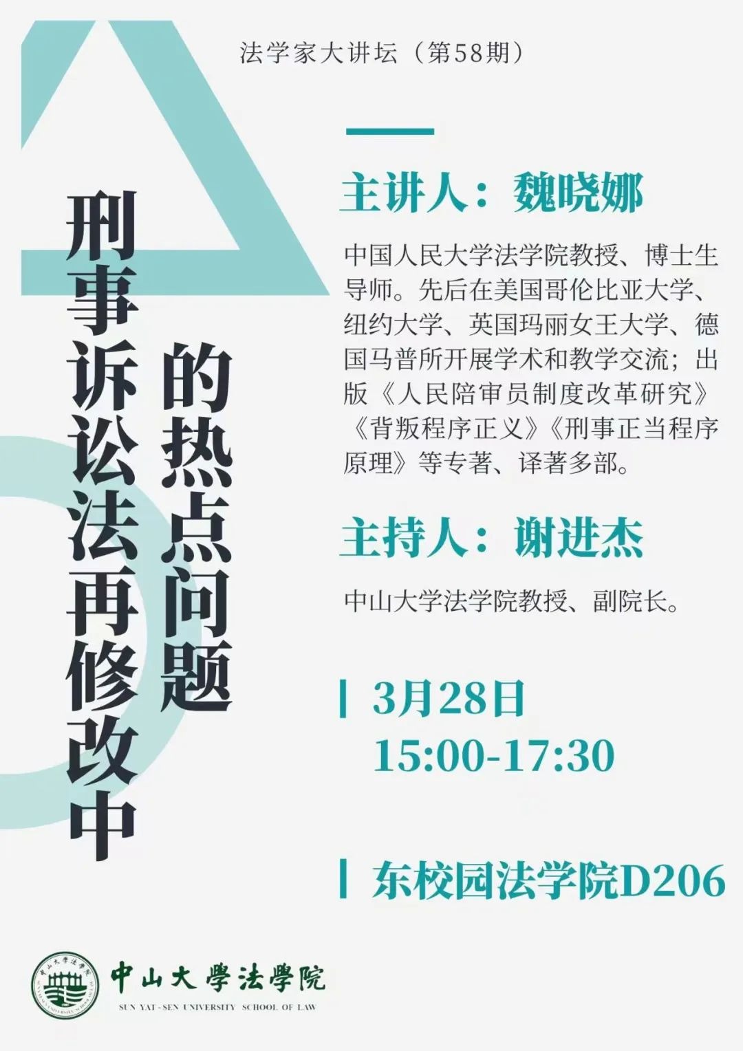 中大法学学术论坛·法学家大讲坛(第58期)——刑事诉讼法再修改中的热点问题