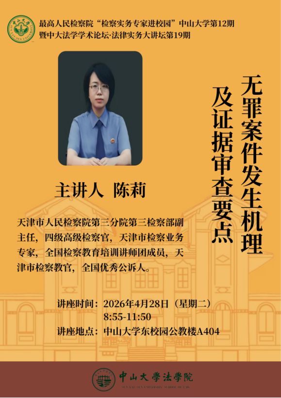 最高人民检察院“检察实务专家进校园”成人有声小说 (第12期)、中大法学学术论坛·法律实务大讲坛(第19期):无罪案件发生机理及证据审查要点